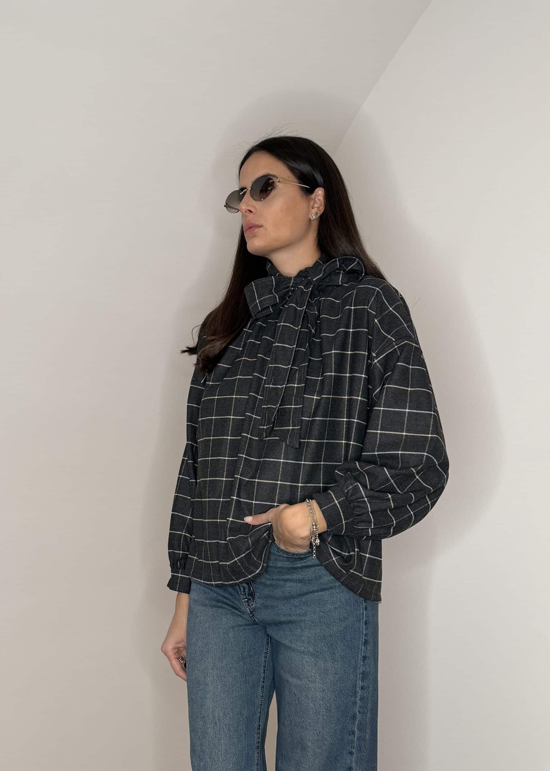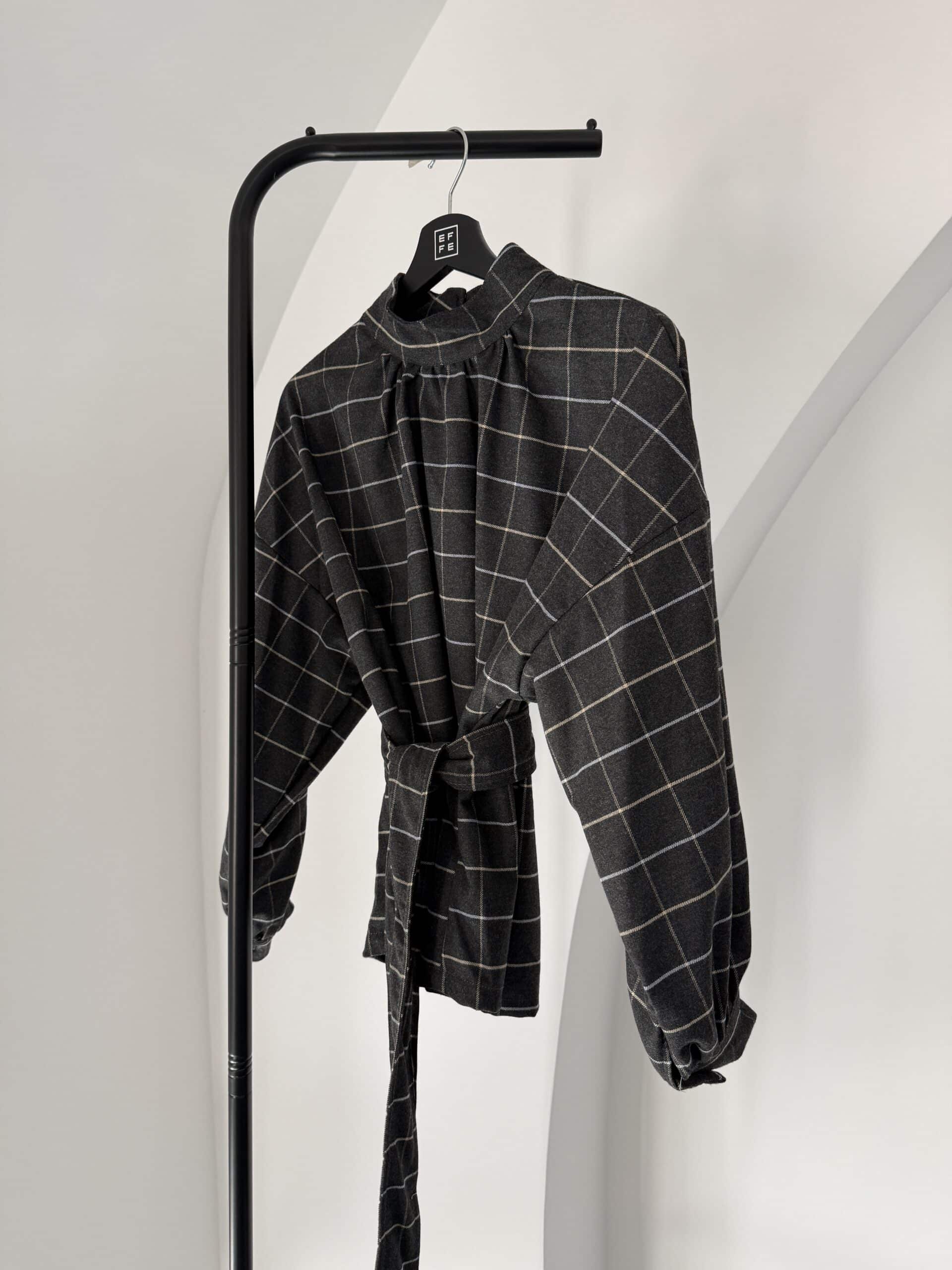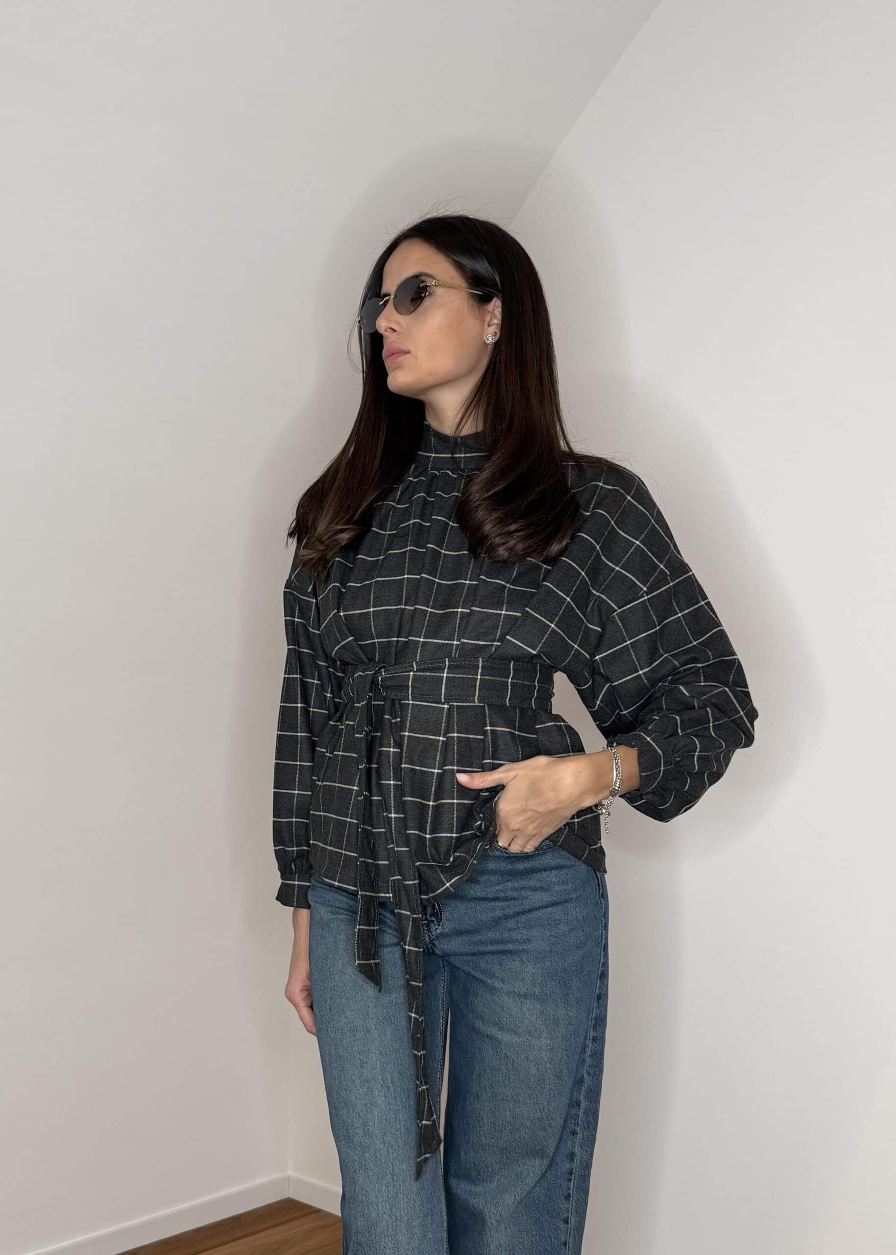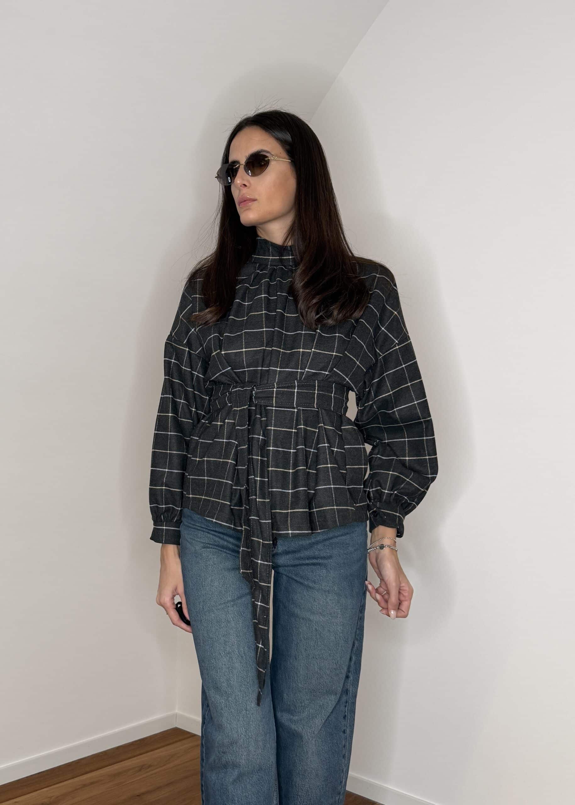 camicia quadri. possibilitร di indossarla in svariati modi, poichรฉ dotata di una cintura rimovibile