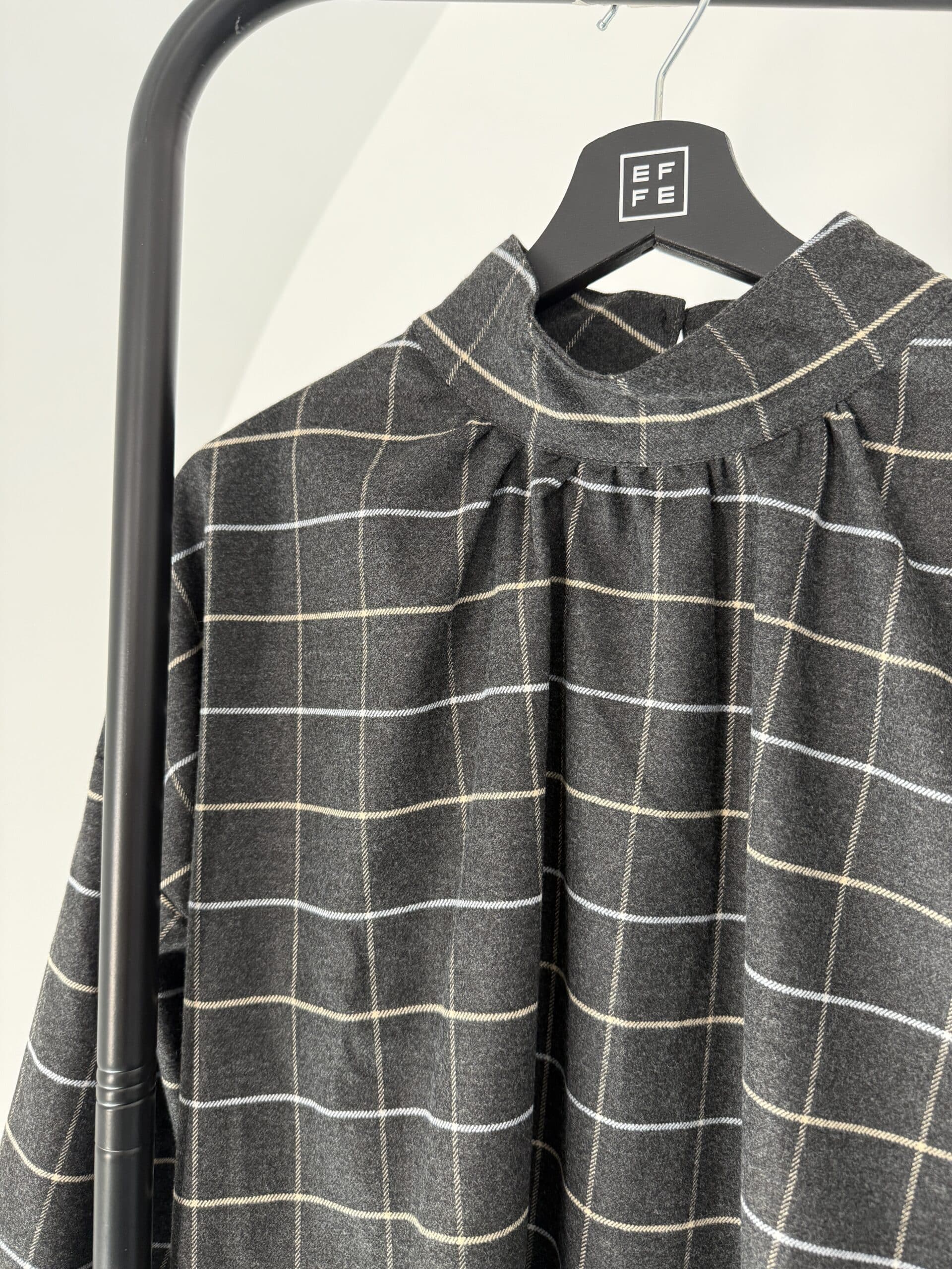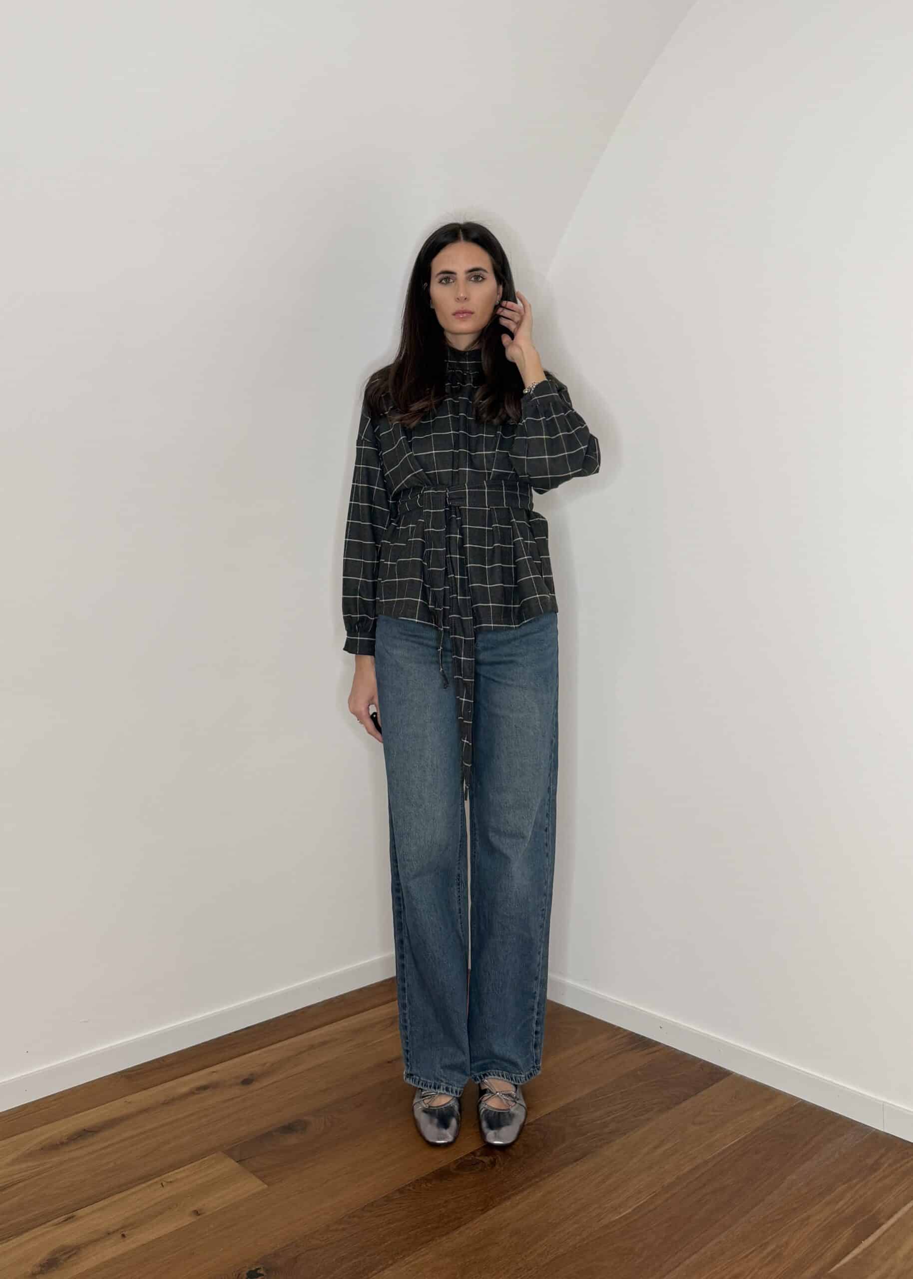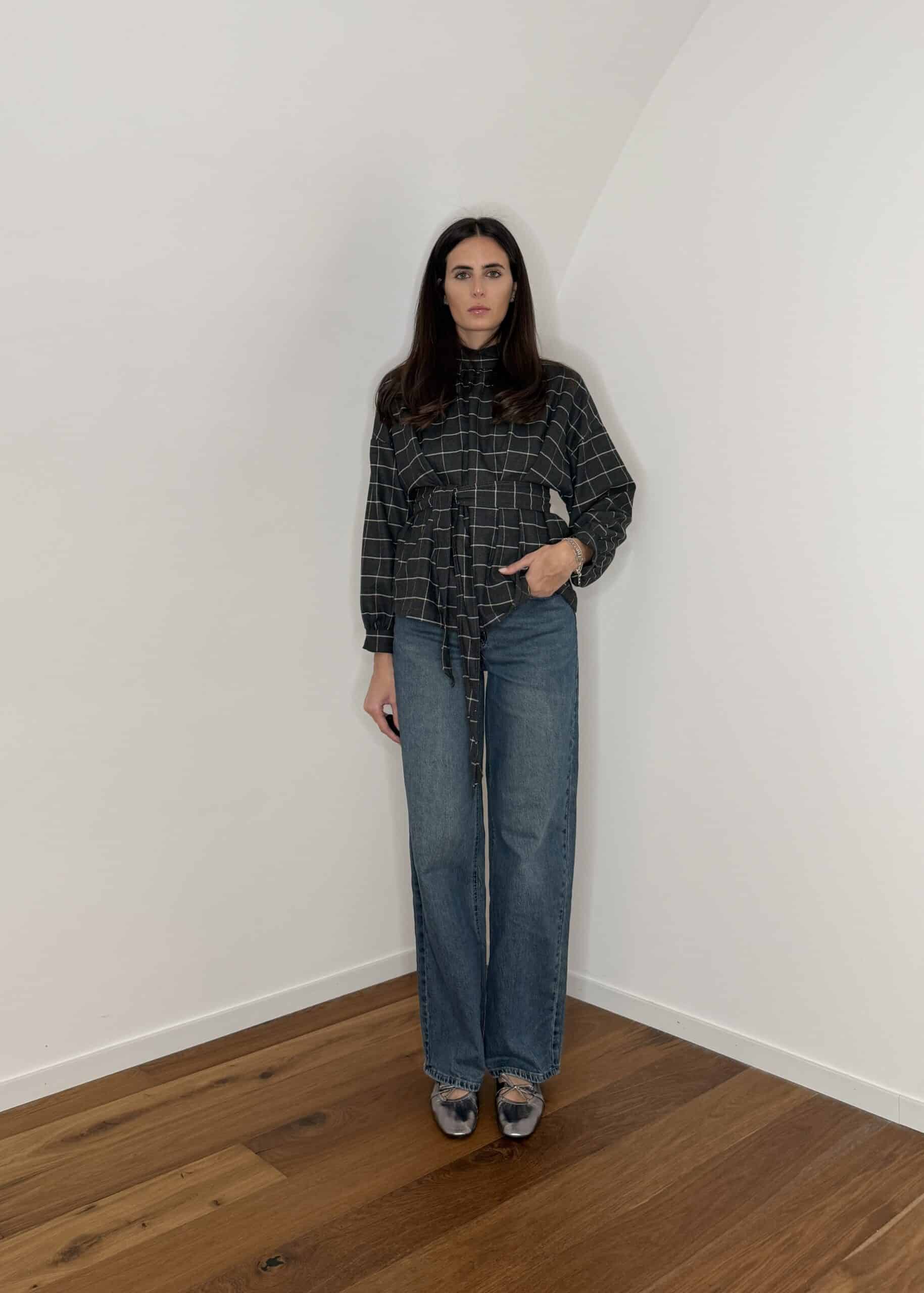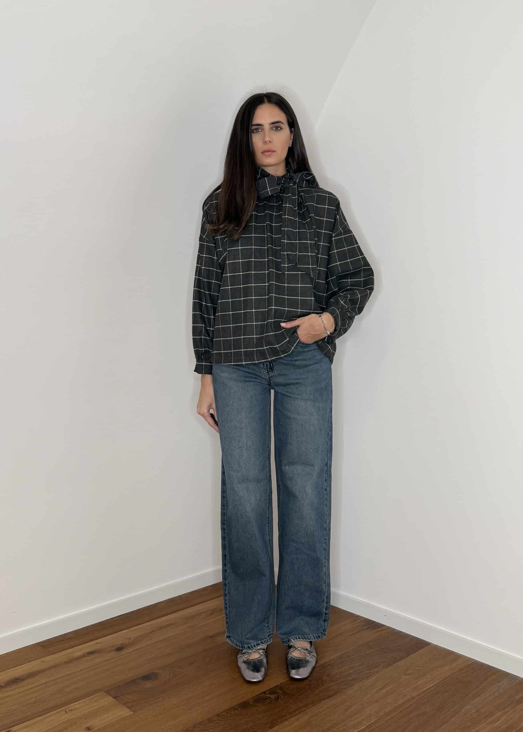 camicia quadri. possibilitร di indossarla in svariati modi, poichรฉ dotata di una cintura rimovibile