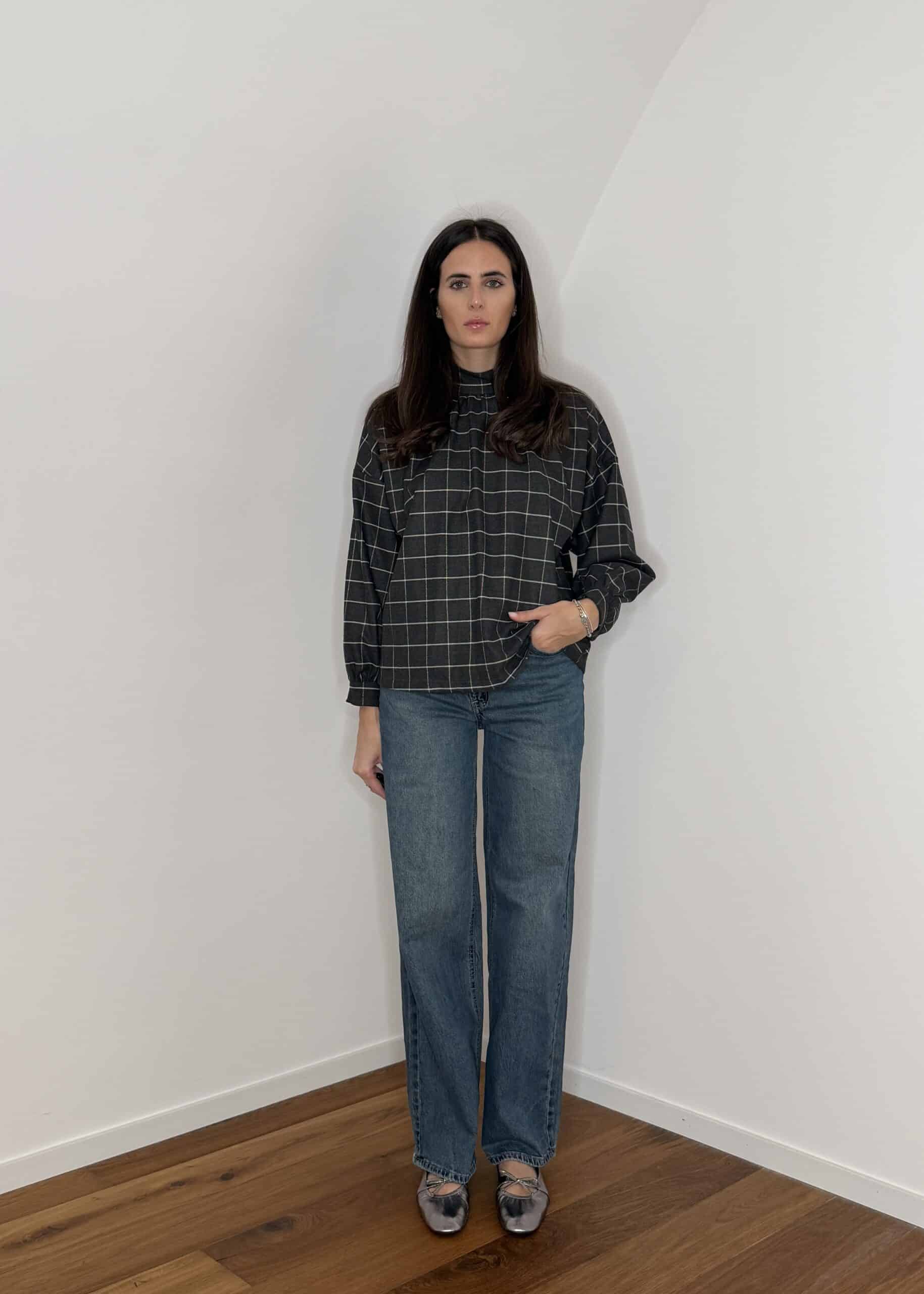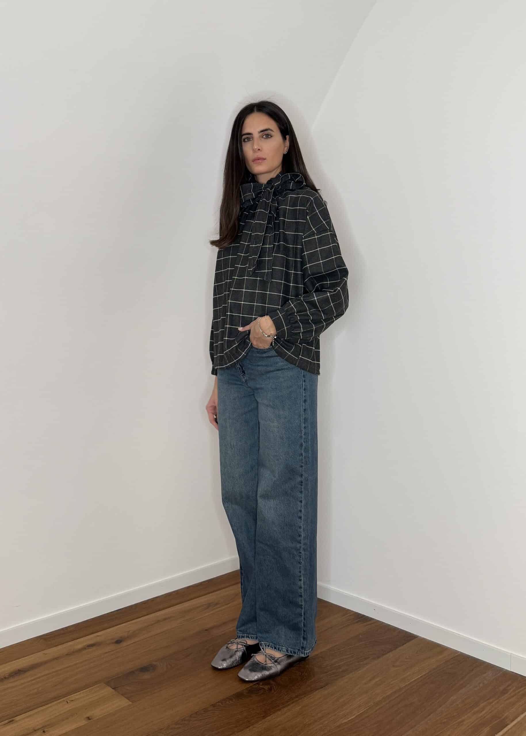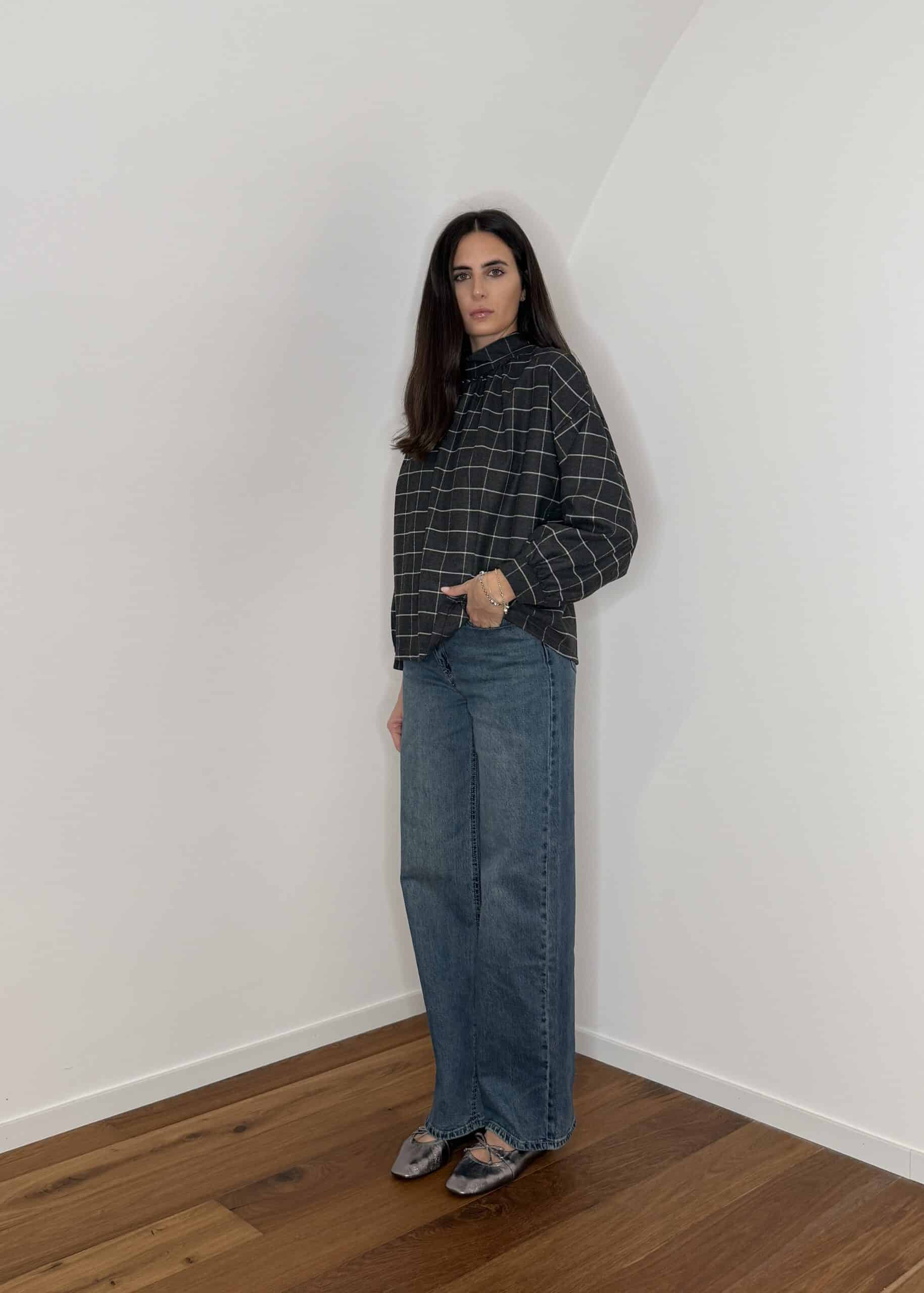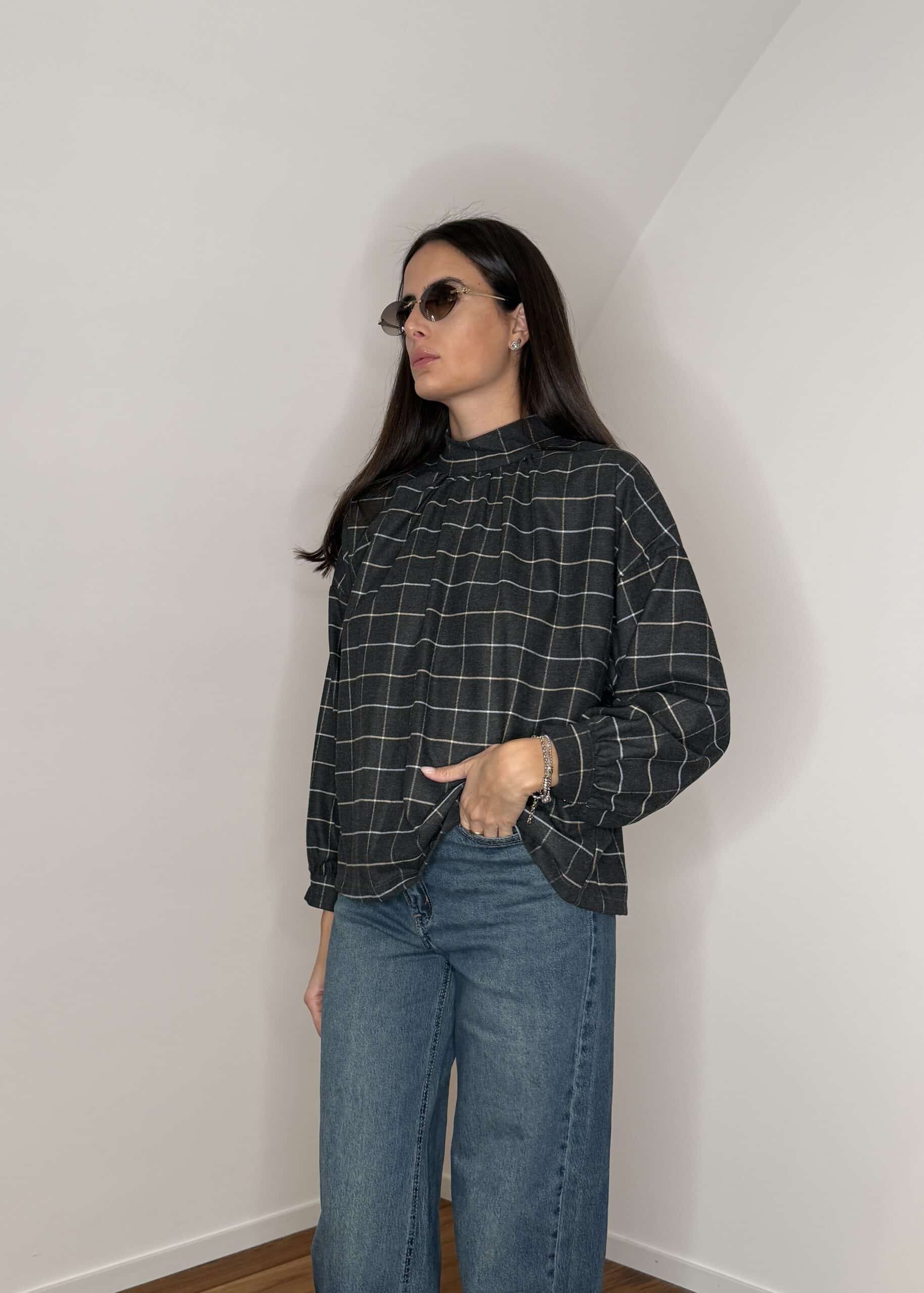 camicia quadri. possibilitร di indossarla in svariati modi, poichรฉ dotata di una cintura rimovibile