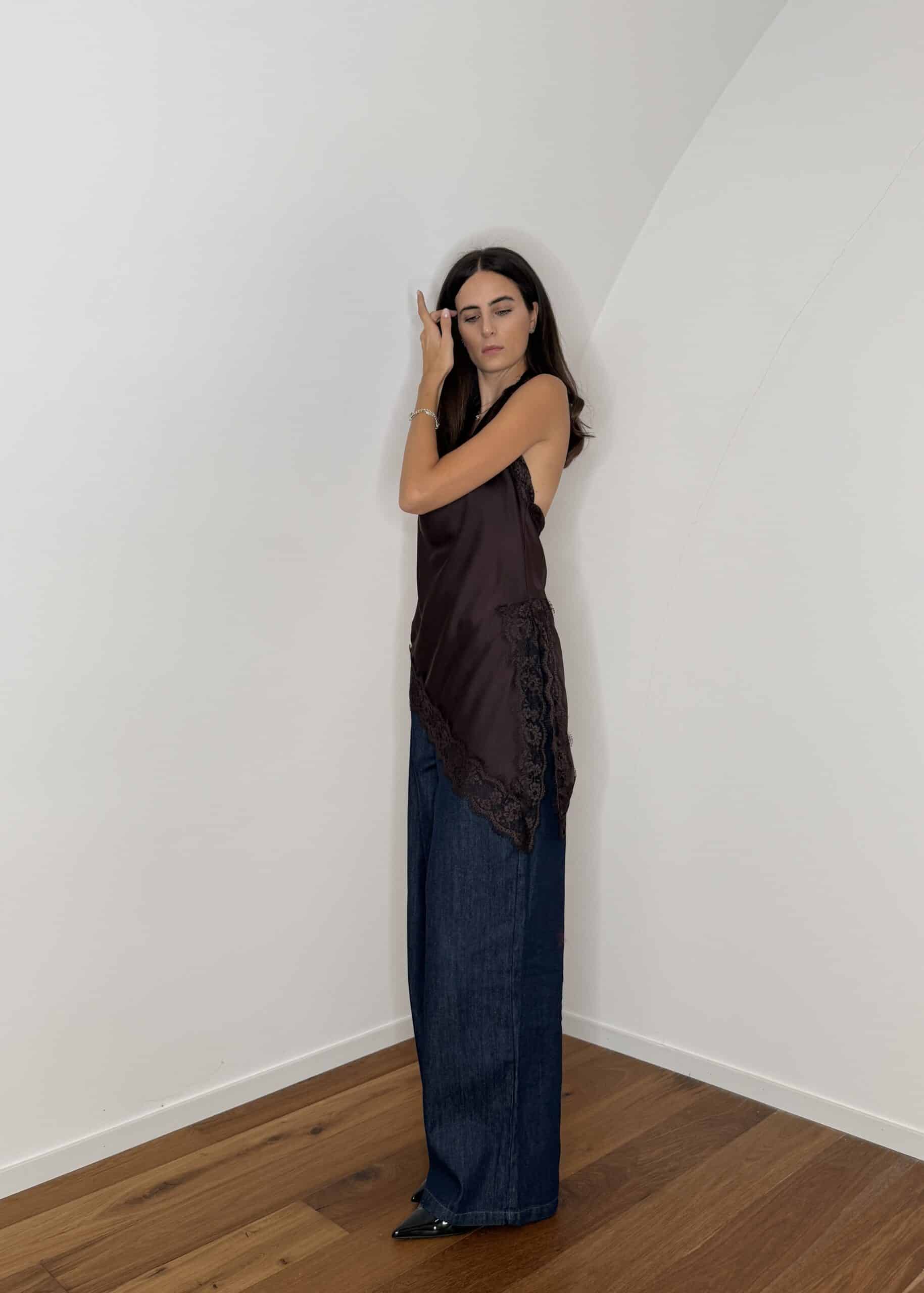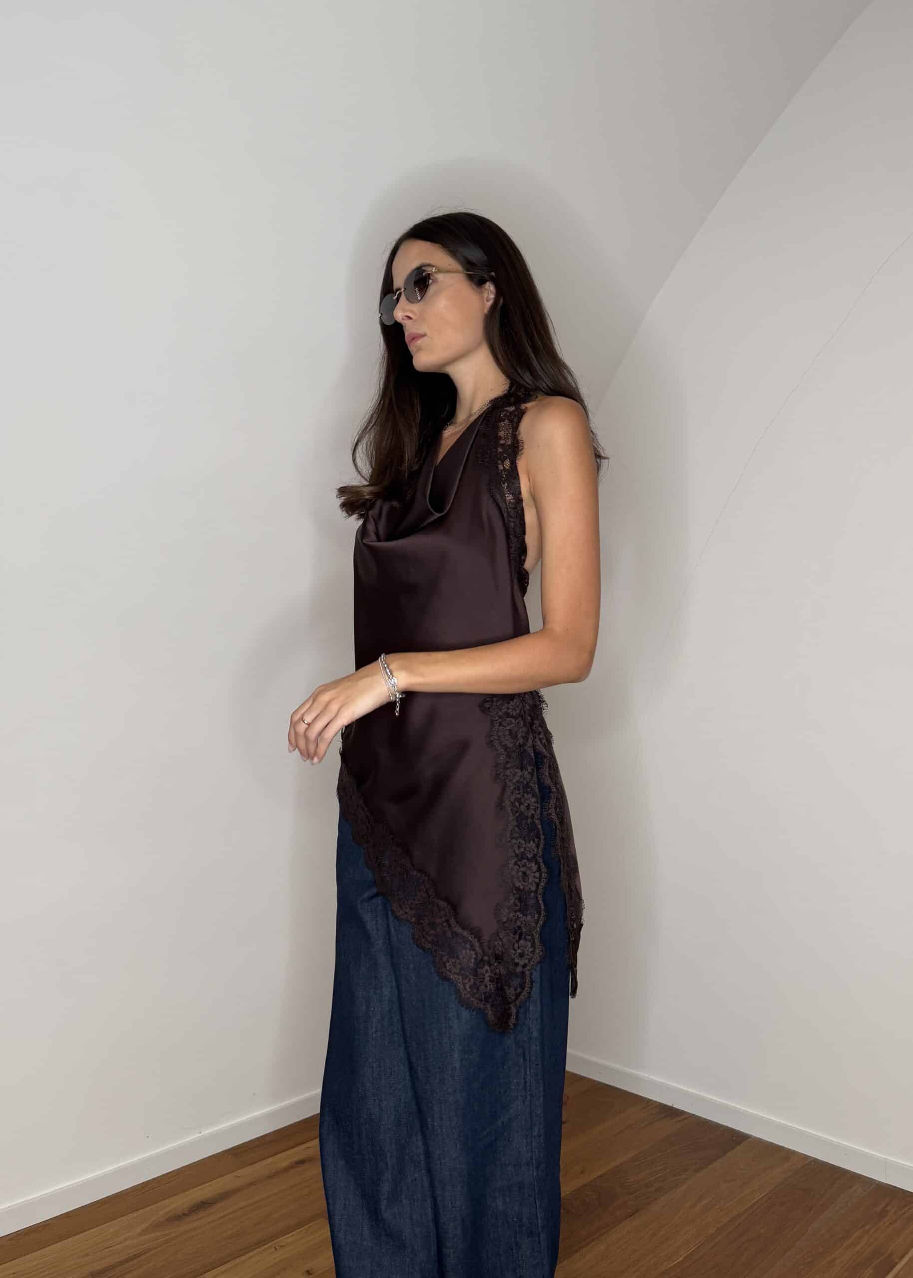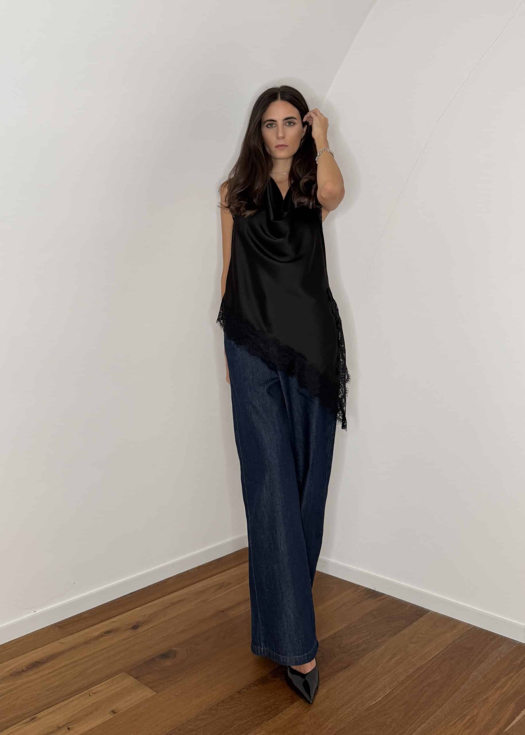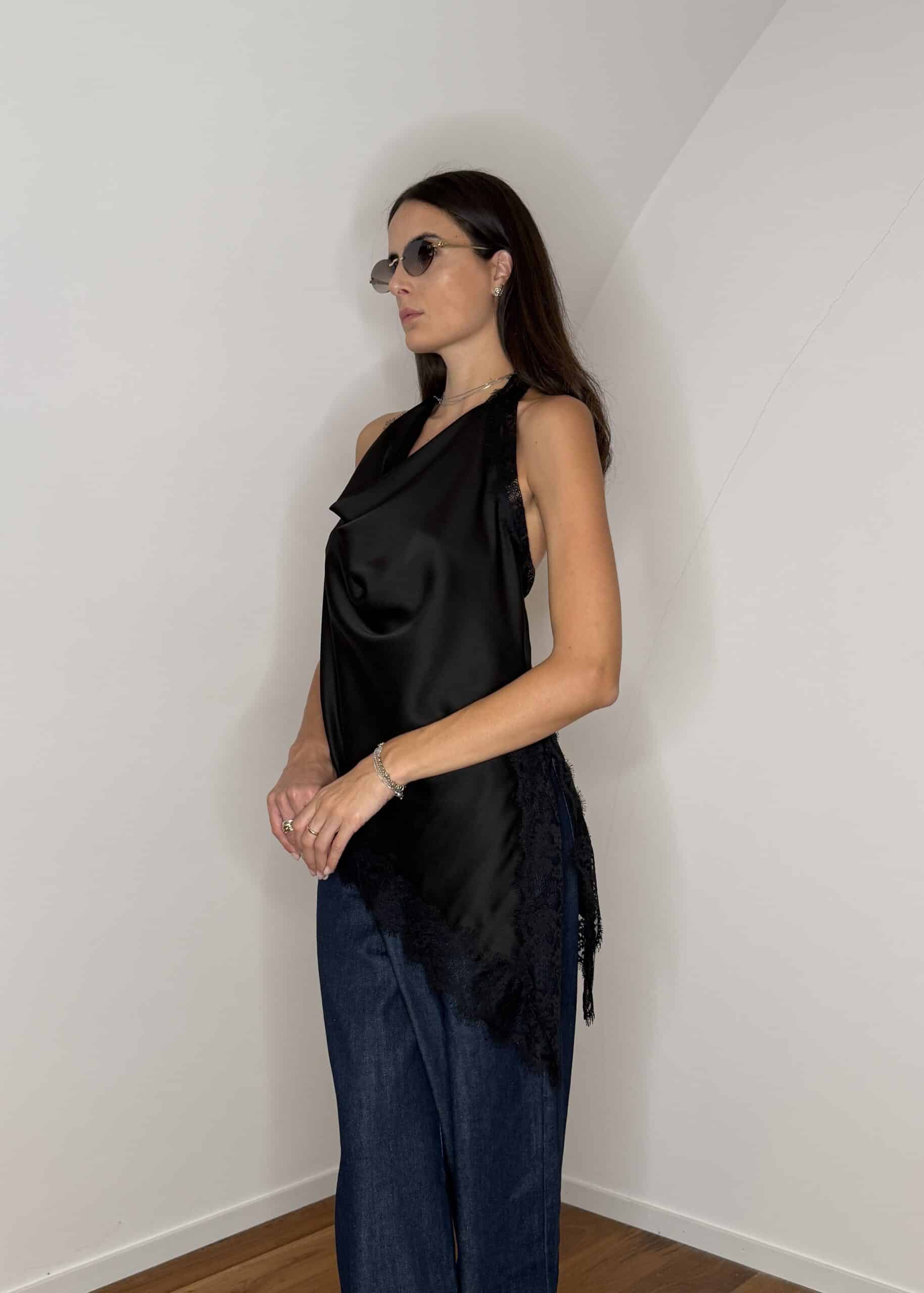 top satin con pizzo