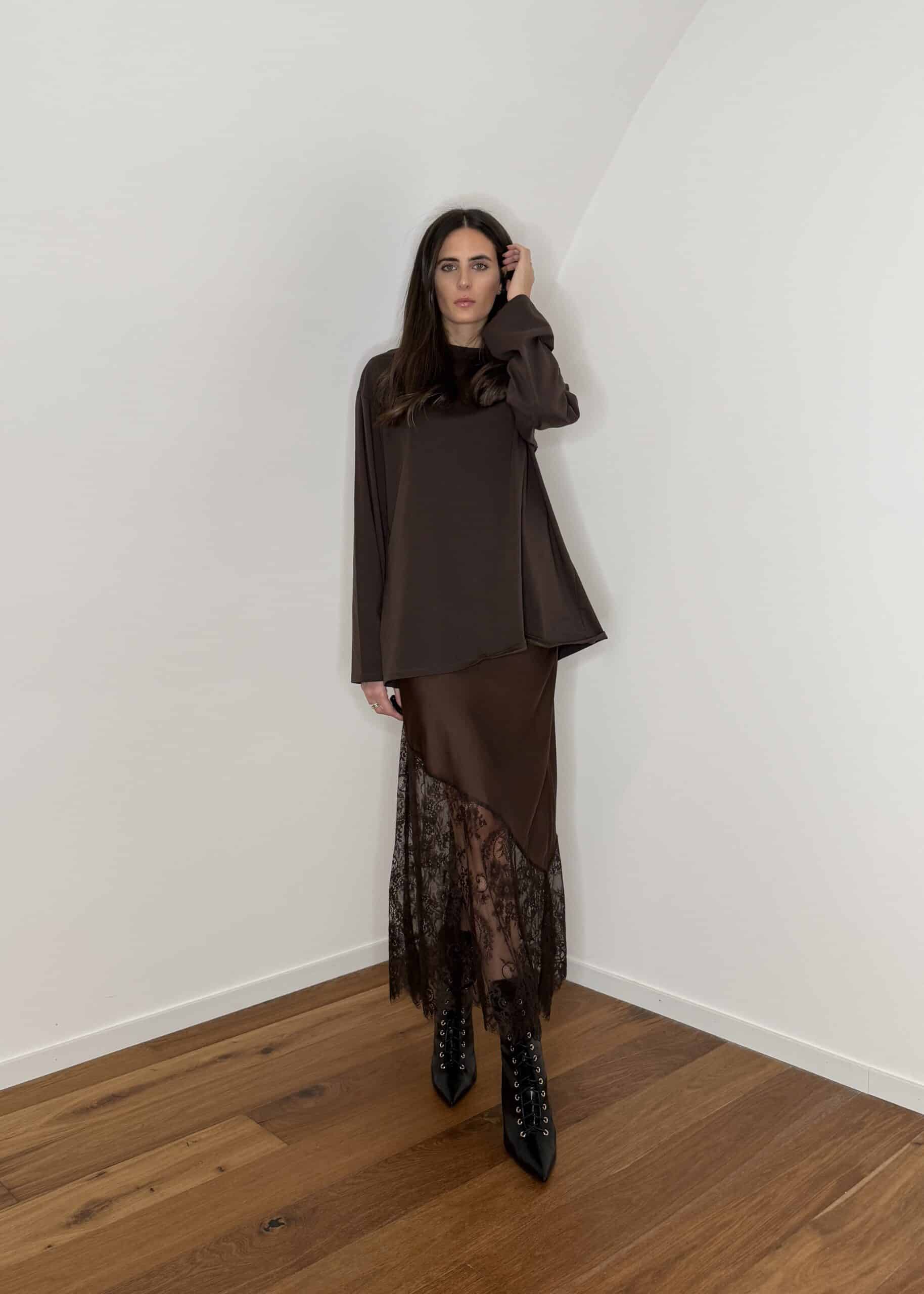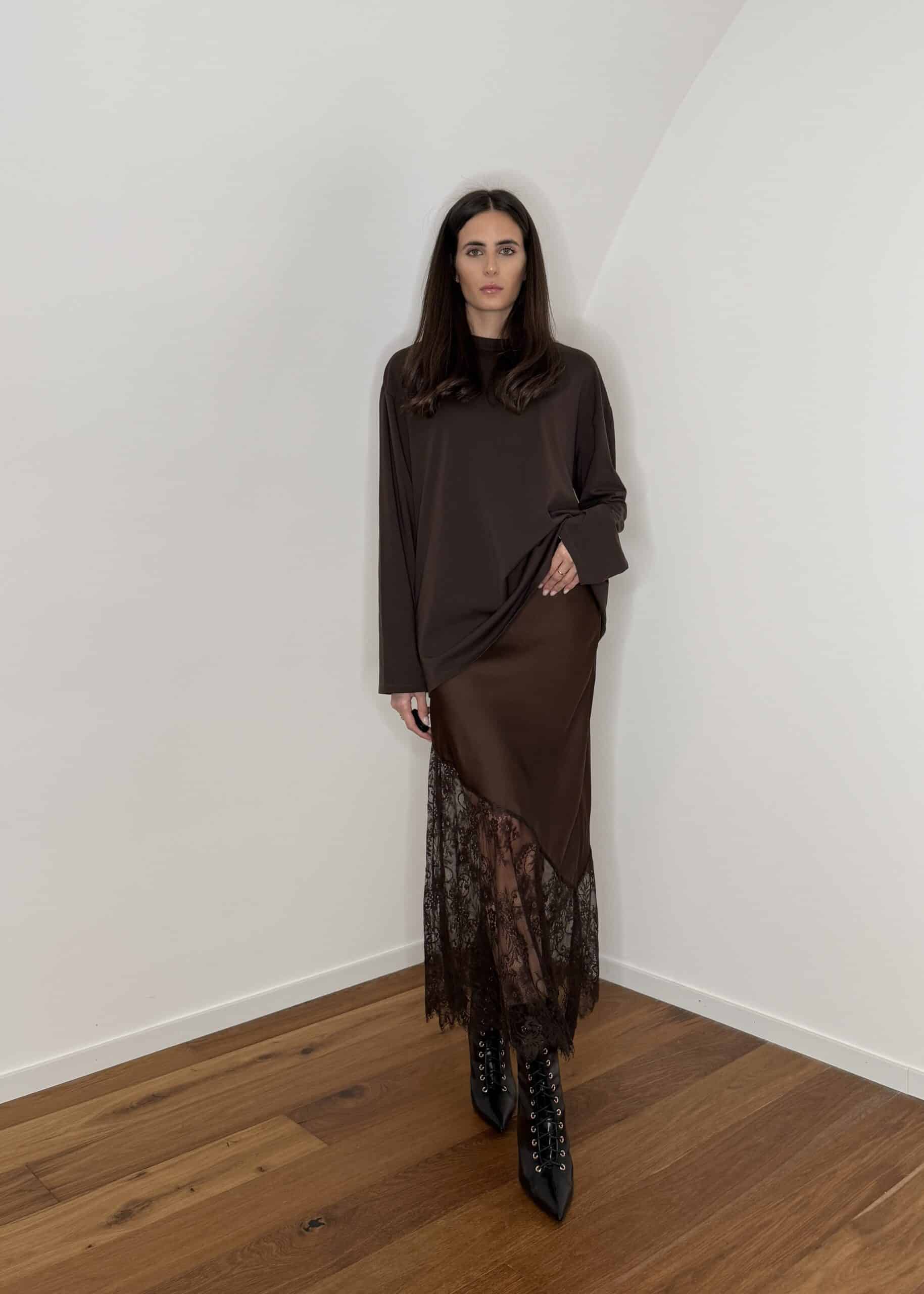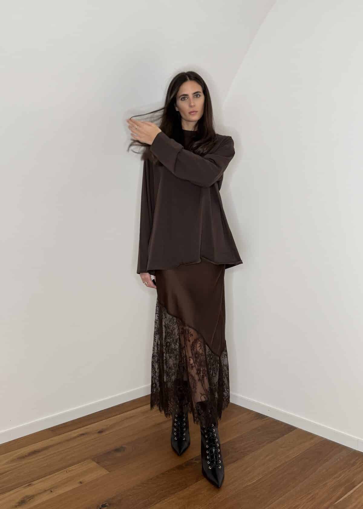 gonna satin con pizzo parte inferiore