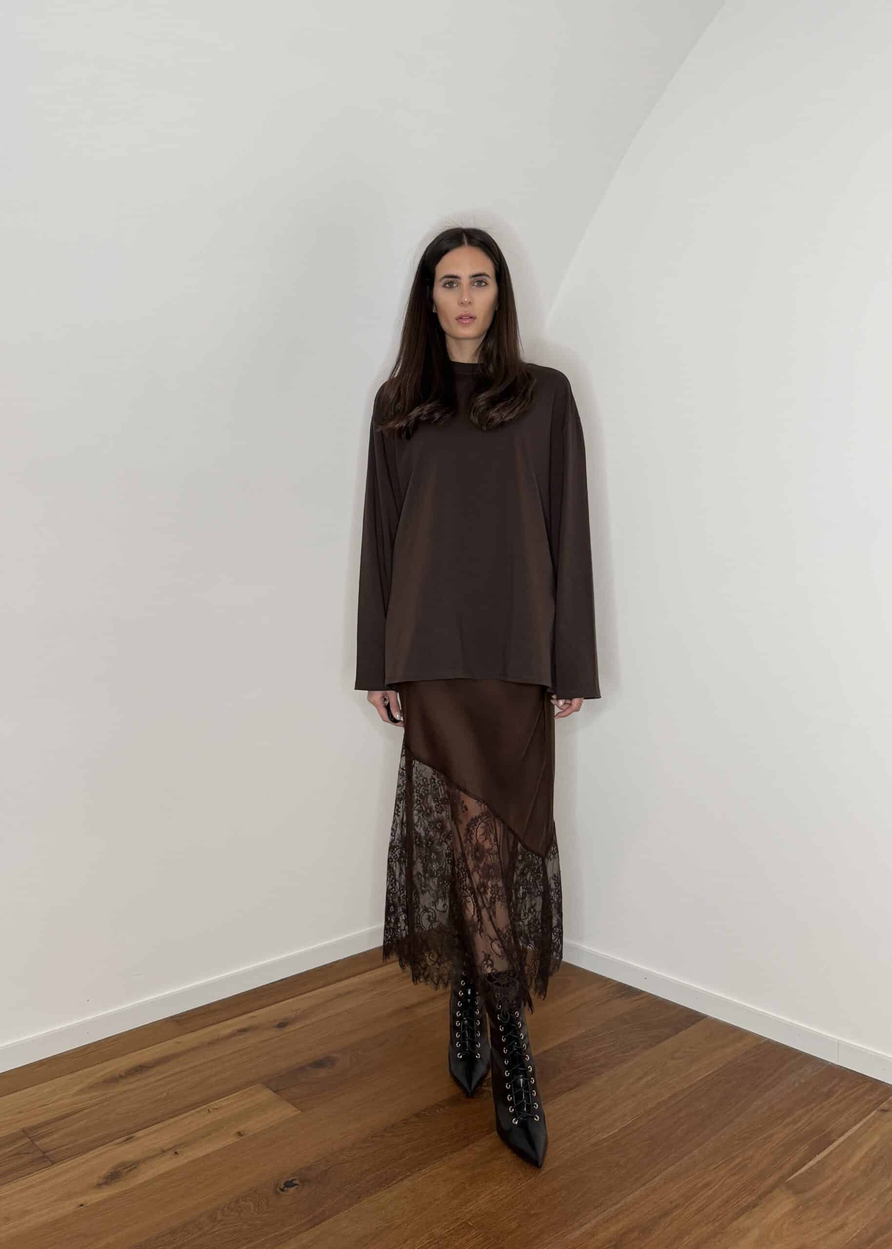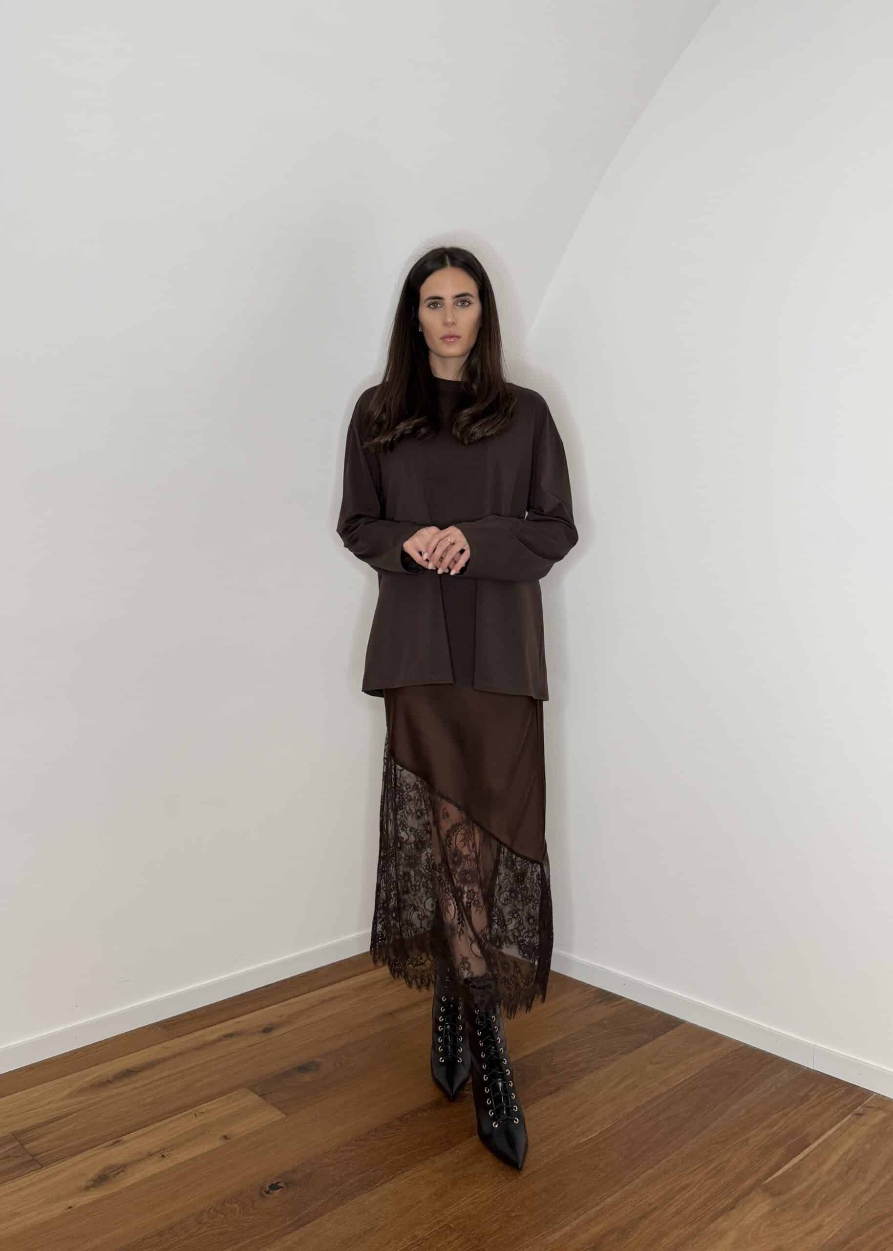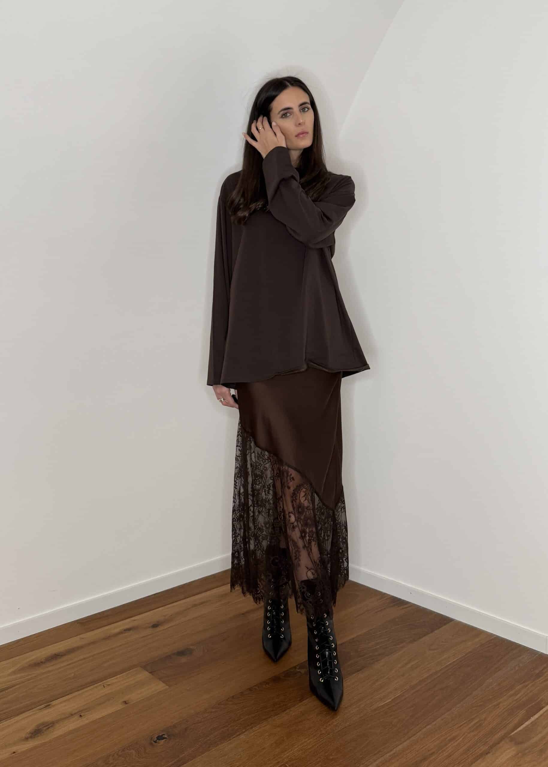 gonna satin con pizzo parte inferiore